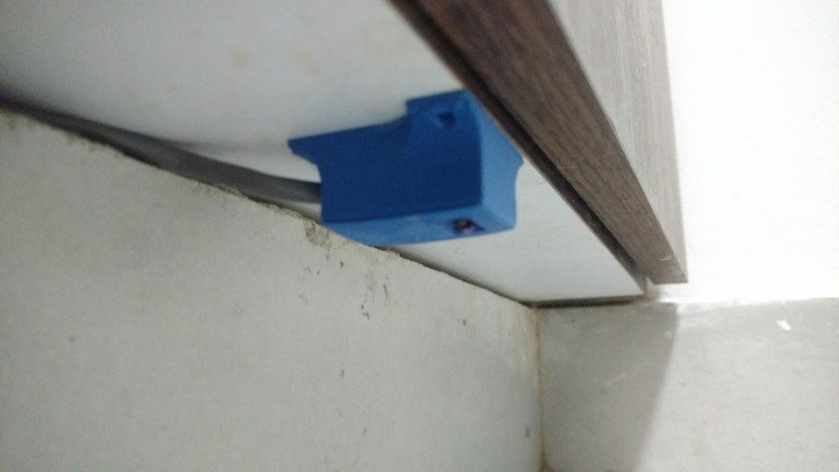 El sensor lo he instalado en la parte inferior del mueble, en una posición cómoda y estratégica, para poder abrir y cerrar las válvulas que controlan el agua con mucha facilidad: